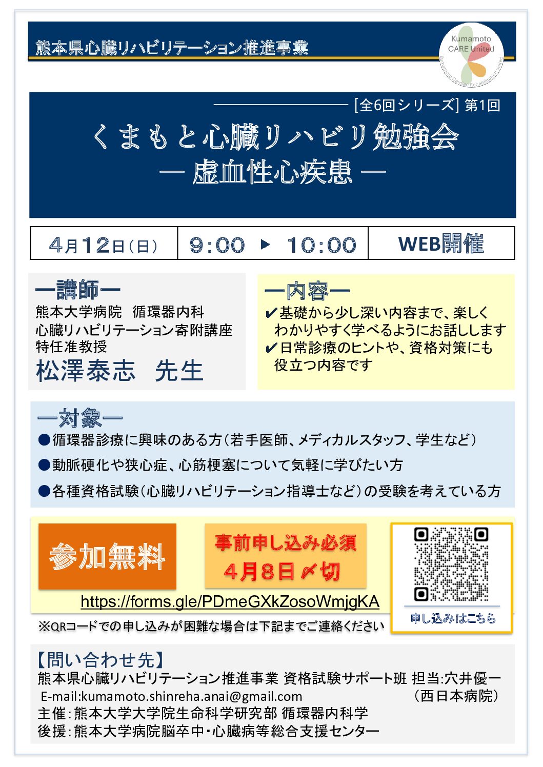 くまもと心臓リハビリ勉強会 1回目 <全6回シリーズ> ~虚血性心疾患~ 【 日 ...